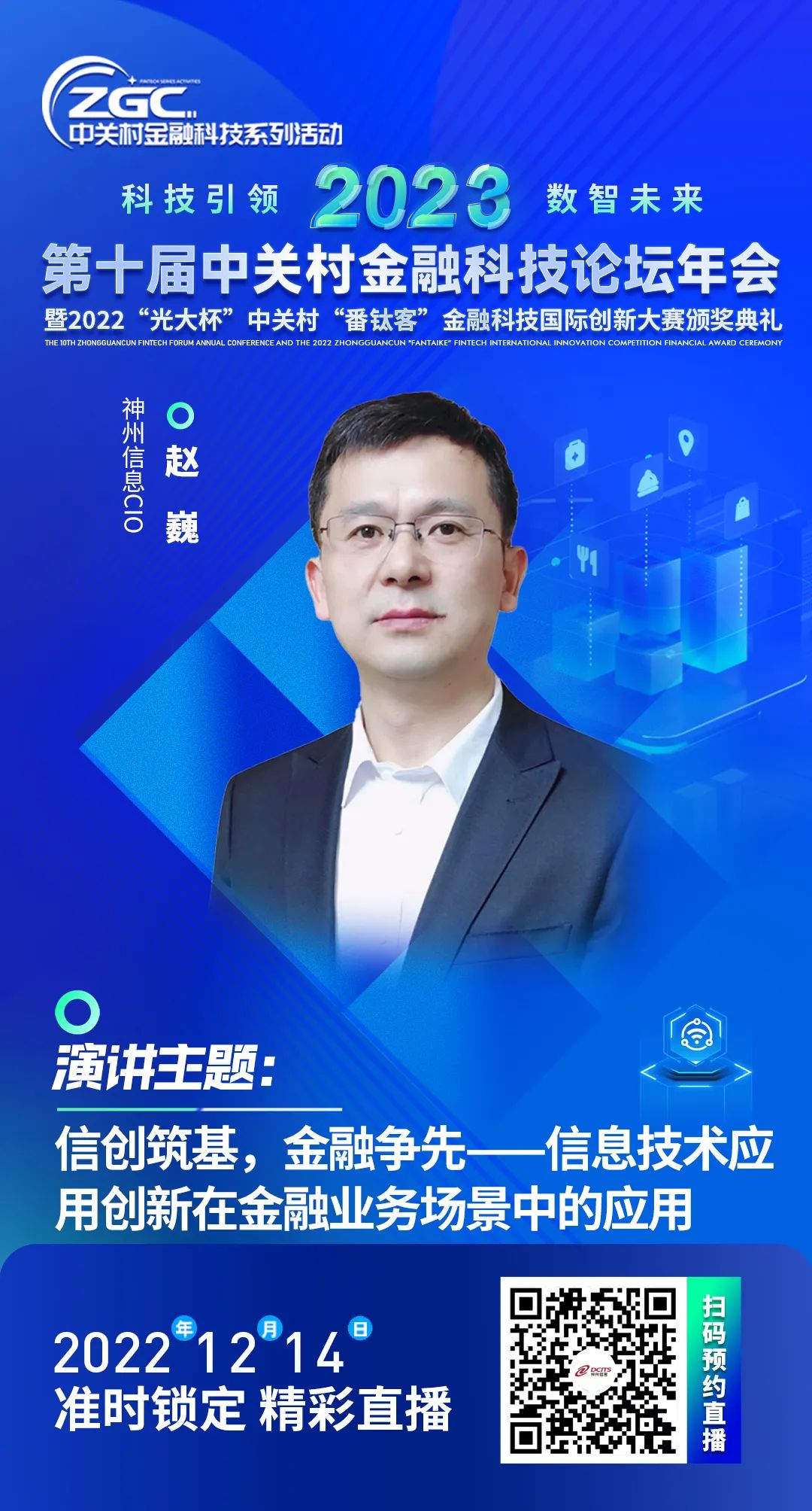 2022年12月13-14日,中关村金融科技产业发展联盟、中关村互联网金融研究院、中国互联网金融三十人论坛将举办2023第十届中关村金融科技论坛年会——以“科技引领 数智未来”为主题,聚焦全球金融科技新发展、高精尖技术在中国的前沿实践应用,共探全球金融科技发展未来。